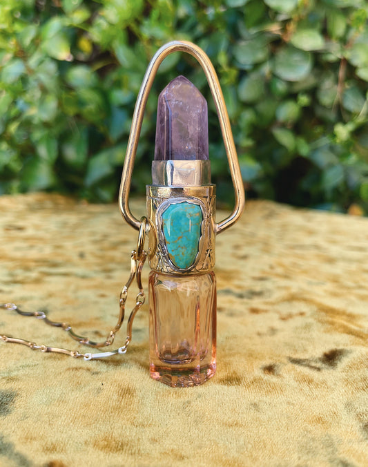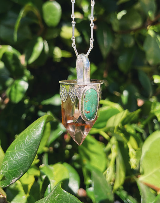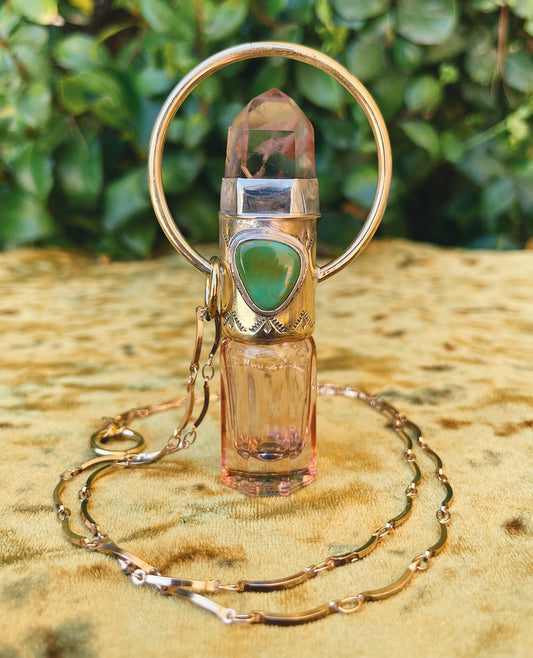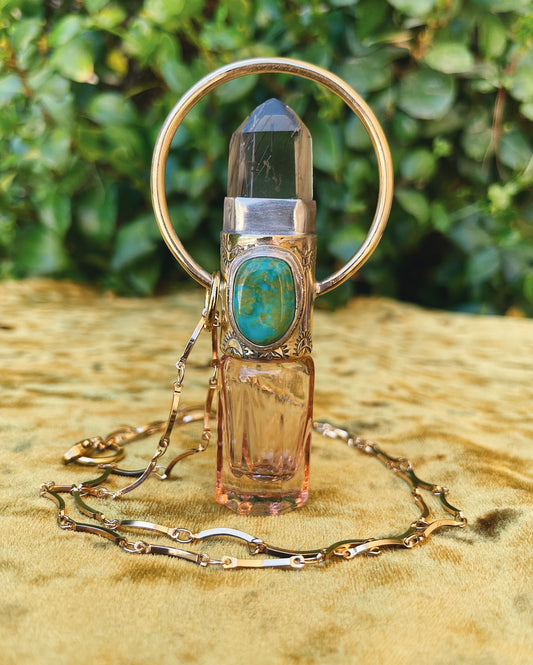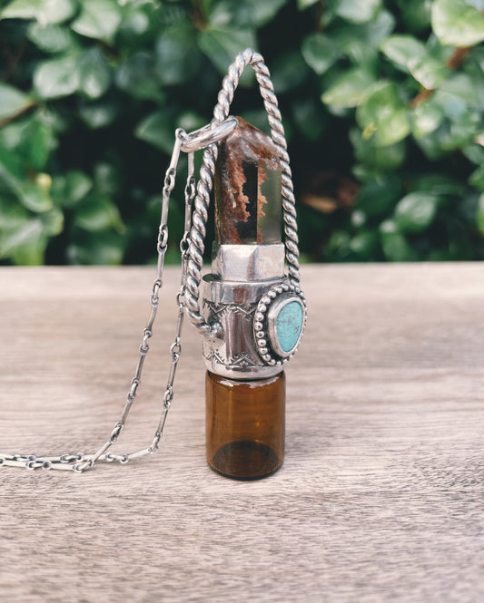 Amphibole Quartz & Turquoise Rollerball Necklace