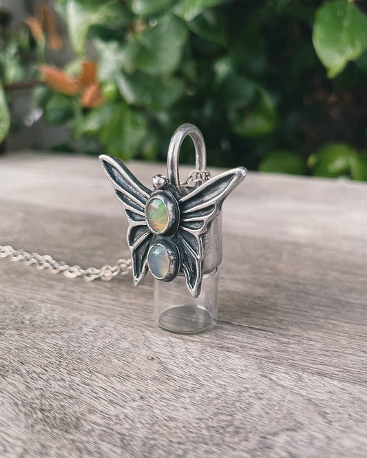 Australian Opal and Sterling Silver Butterfly Rollerball Necklace