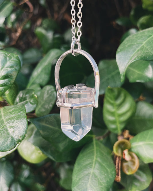 Double Stone - Obsidian, Amber, and Sterling Silver Rollerball Necklace