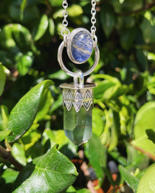 Gold Rutilated Quartz with Lapis Lazuli & Lodolite Talisman