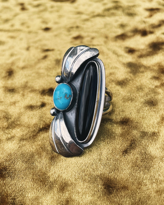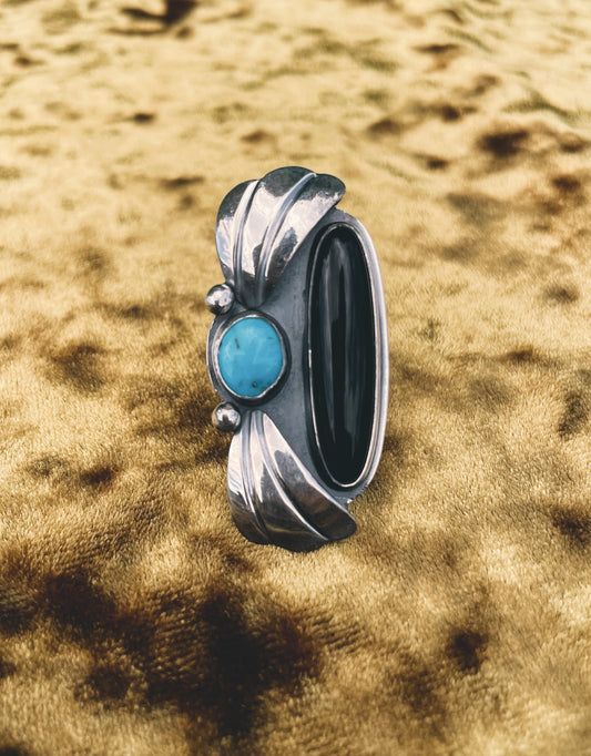 Sold outOnyx & Turquoise Ring Sz 6.5