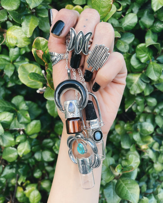 Ready to ship. Sterling Silver Fringe - Obsidian + Opal Rollerball Necklace