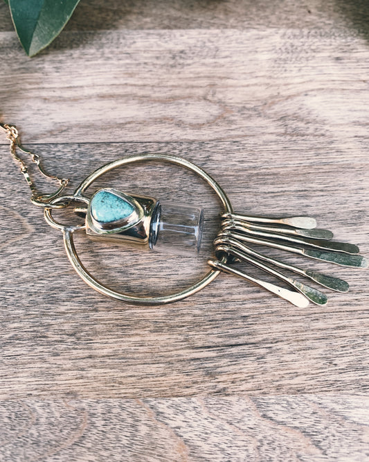 Oleum Dream Catcher - Candelaria Turquoise and Brass Rollerball Necklace