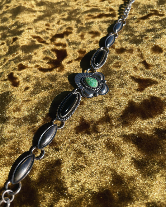Sonoran Turquoise & Black onyx Sterling Silver Choker Necklace