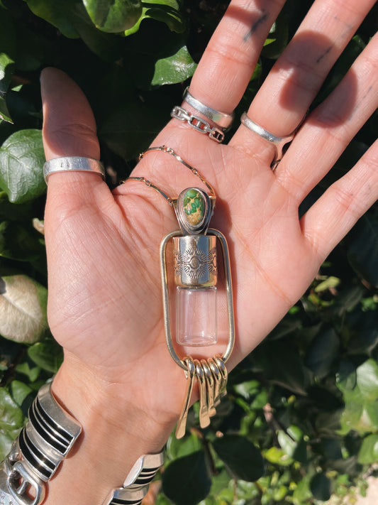 Brass Charm - Turquoise Rollerball Necklace