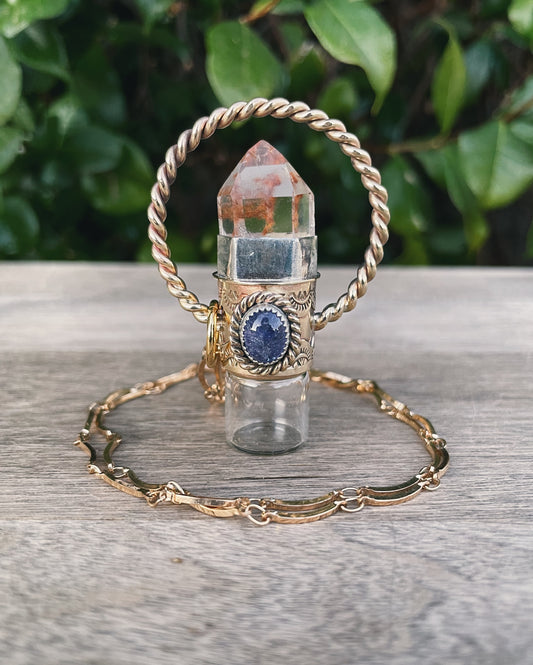 Brass Amphibole Quartz & Tanzanite Rollerball Necklace