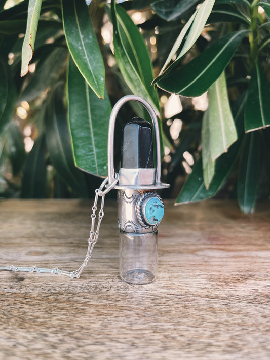 Sterling Silver Classic - Obsidian + Turquoise Rollerball Necklace