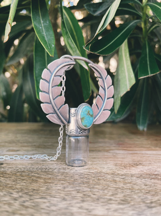 Sterling Silver Horizon Leafy - Floating Hachita Turquoise Rollerball Necklace