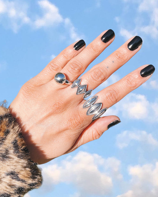 Sz 6.5 Mother of Pearl, Onyx, and Turquoise Ring