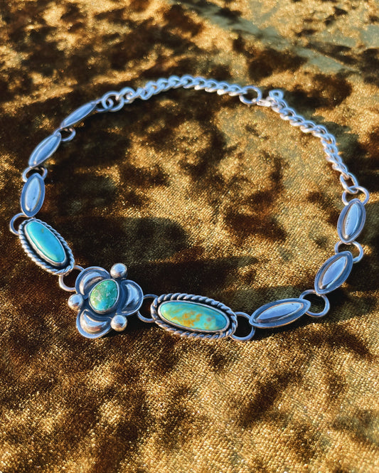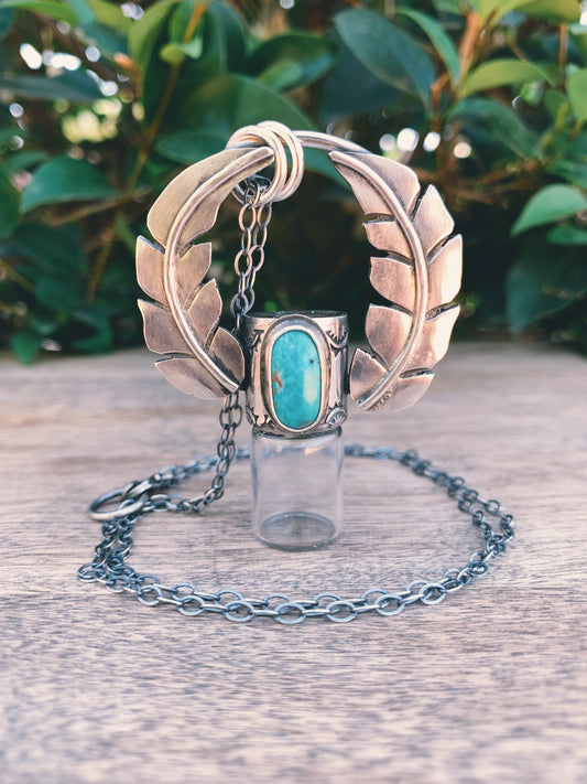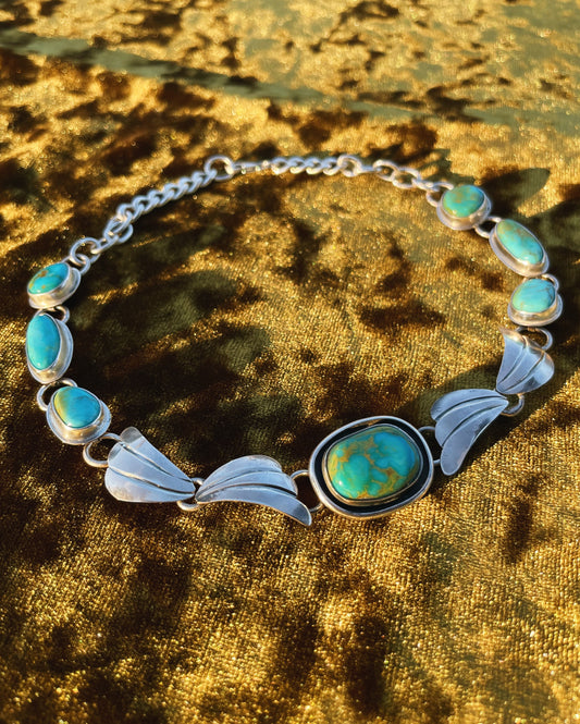 Candelaria Turquoise Leaves and Sterling Silver Horizon Rollerball Necklace
