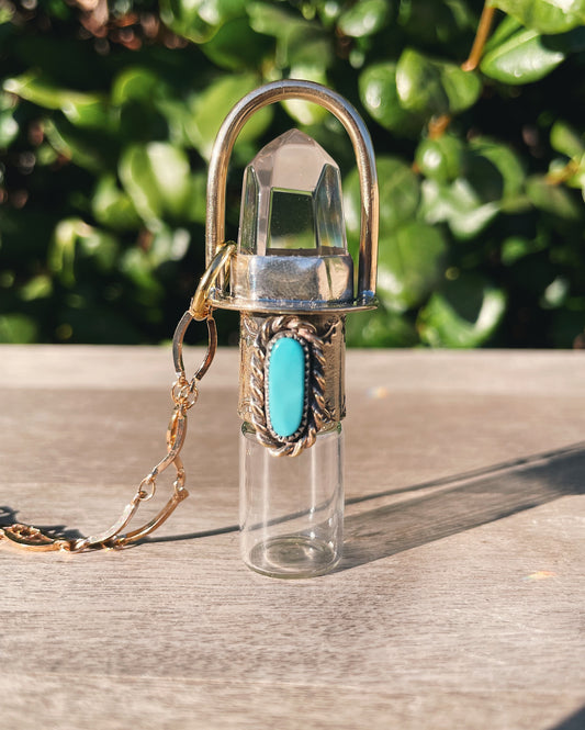 Brass Water Element - Sleeping Beauty Turquoise Rollerball Necklace