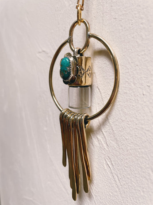 Brass Oleum Dream Catcher - Sonoran Turquoise Rollerball Necklace