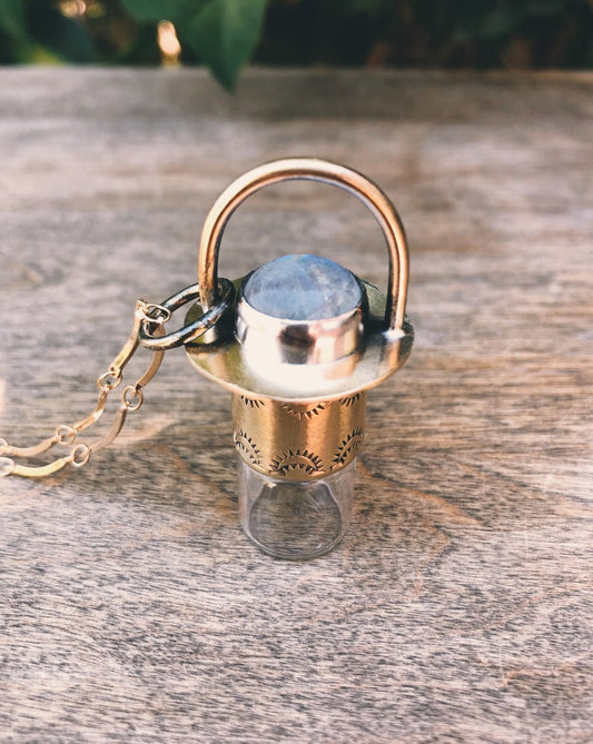 Brass Mini - Rainbow Moonstone Rollerball Necklace