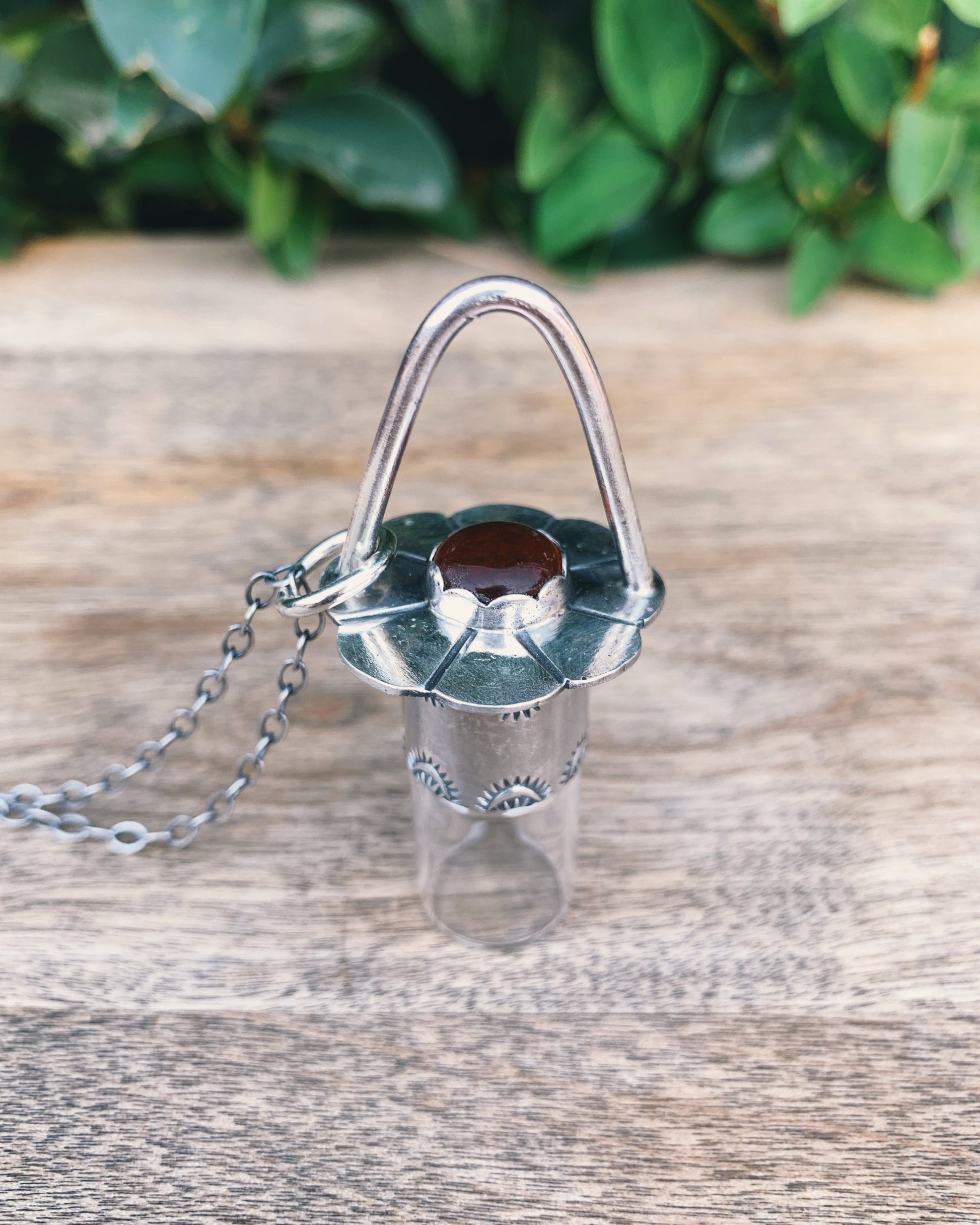 New Original Roadkill Gems design! Handmade Sterling Silver Rollerball Necklace featuring Baltic Amber Daisy. Preserve your most precious fragrances in this clear glass vial and a Stainless steel roller ball.