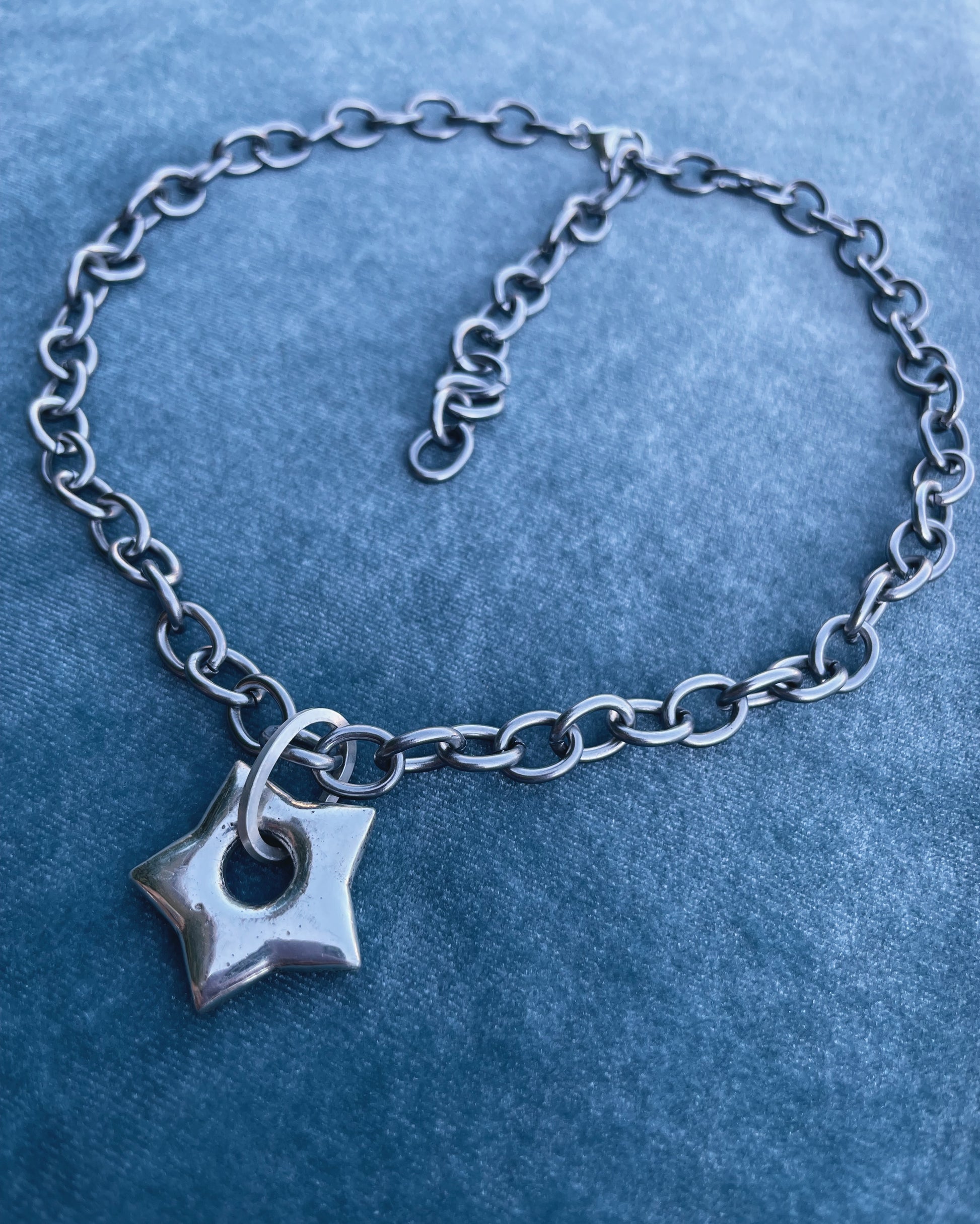 Puff Star Choker. Handmade with solid Sterling Silver using the sand casting technique. Beautifully imperfect Puffy Star made for everyday wearable art.