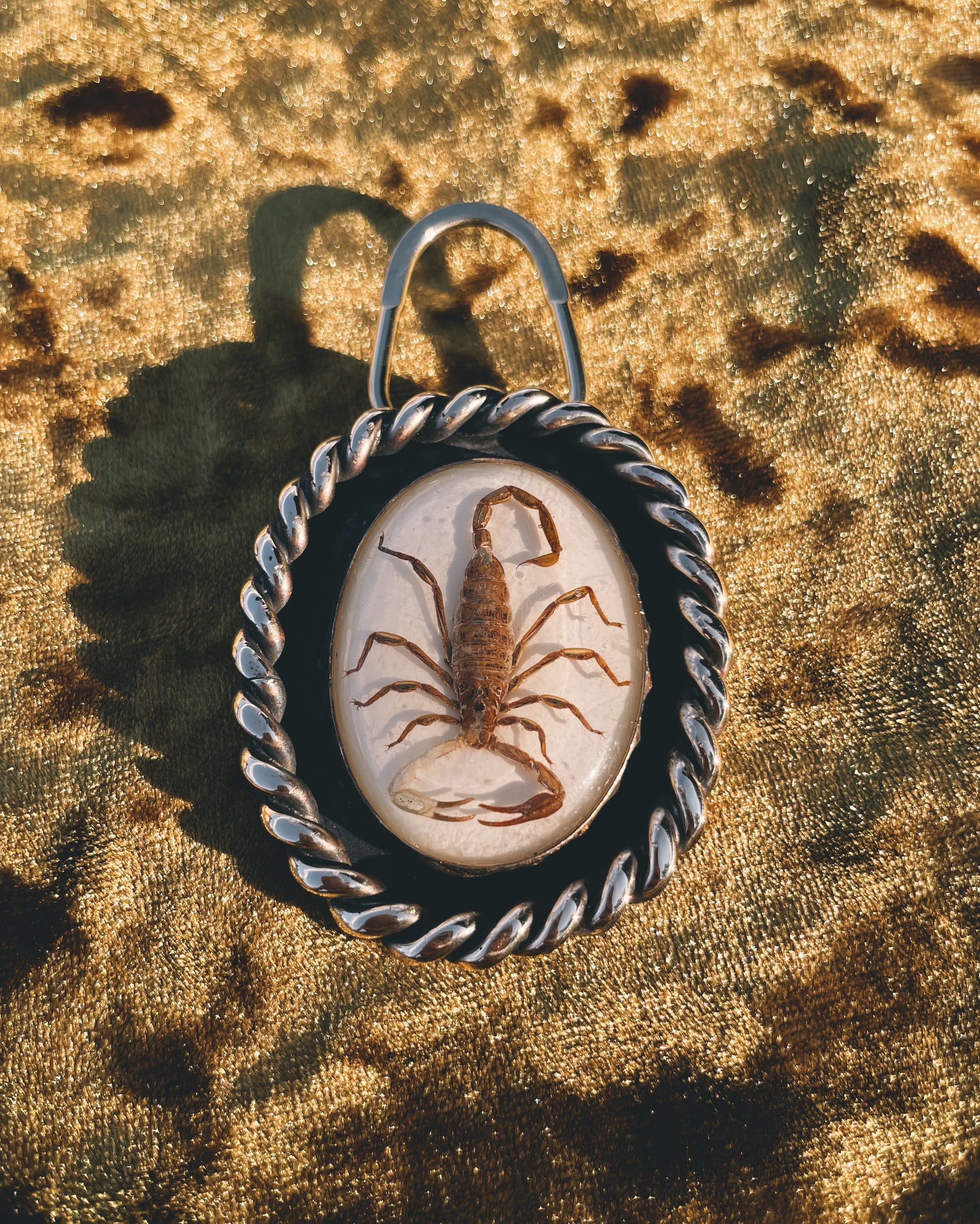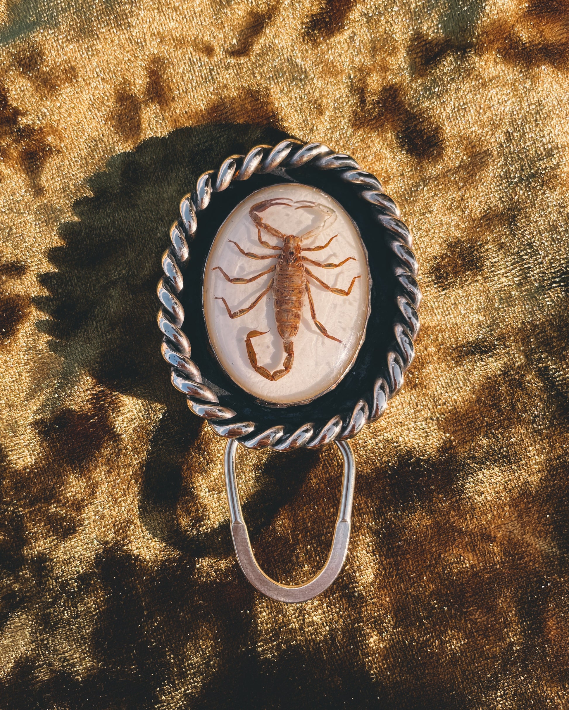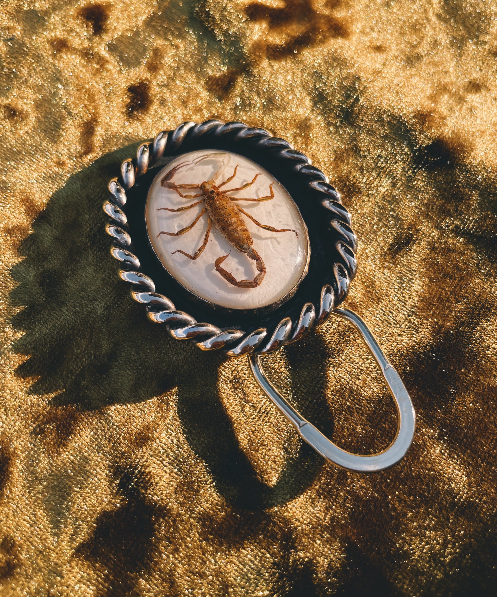 Handmade Key Ring made with Red Brass featuring a real Scorpion cast in resin.