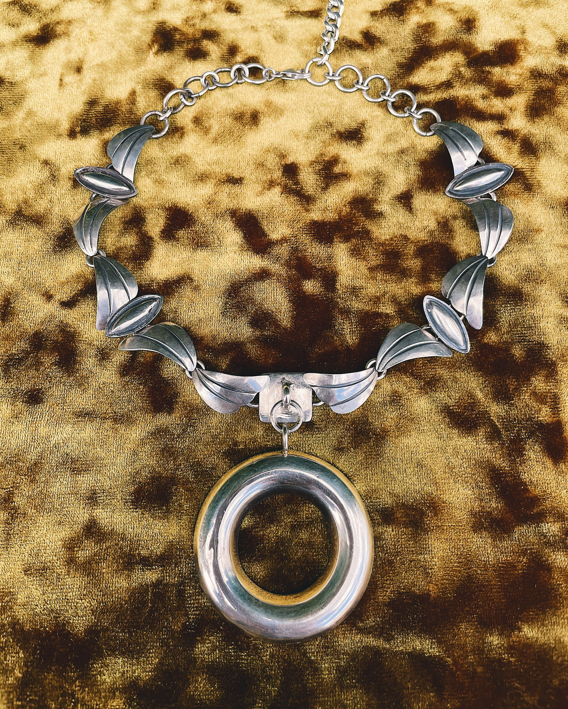 Handmade Sterling Silver Filigree style choker featuring a gorgeous vintage Sterling hollow ring. Each link is hand stamped, sawed, and polished.